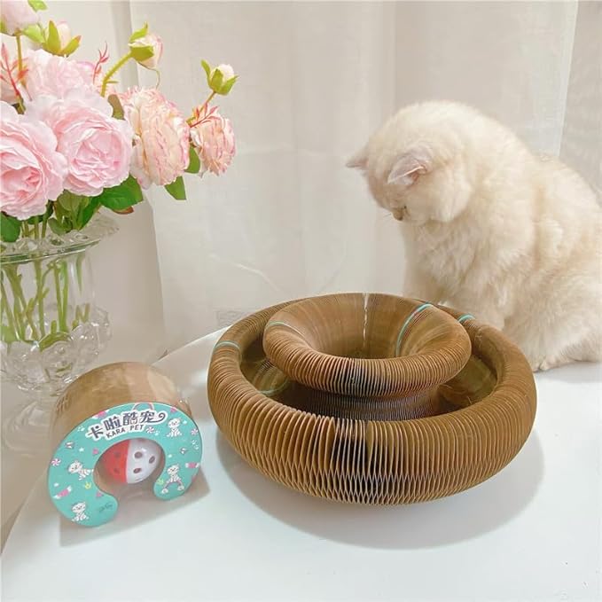 Unlike most cardboard box cat toys, this is both a thick cat scratch board cardboardand a toy with a built-in ball. It satisfies both their claws and their curiosity.