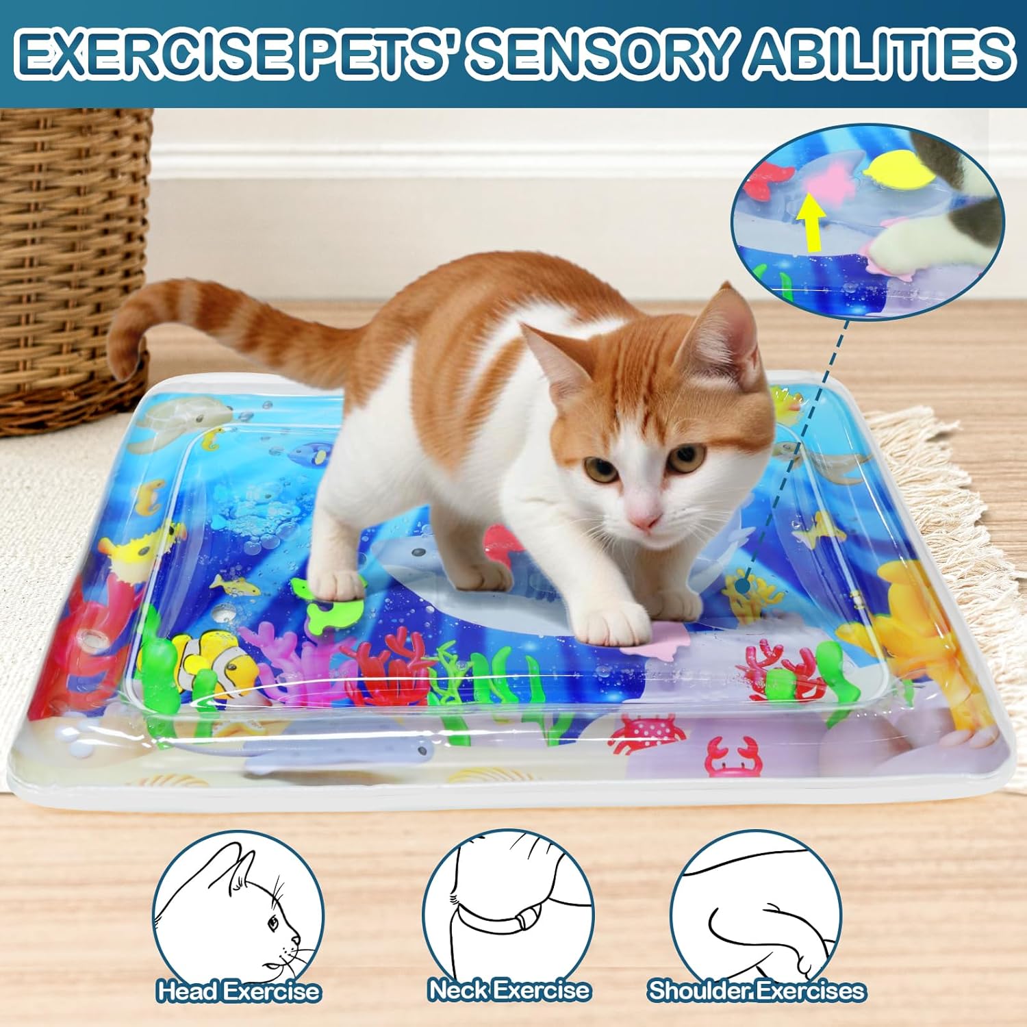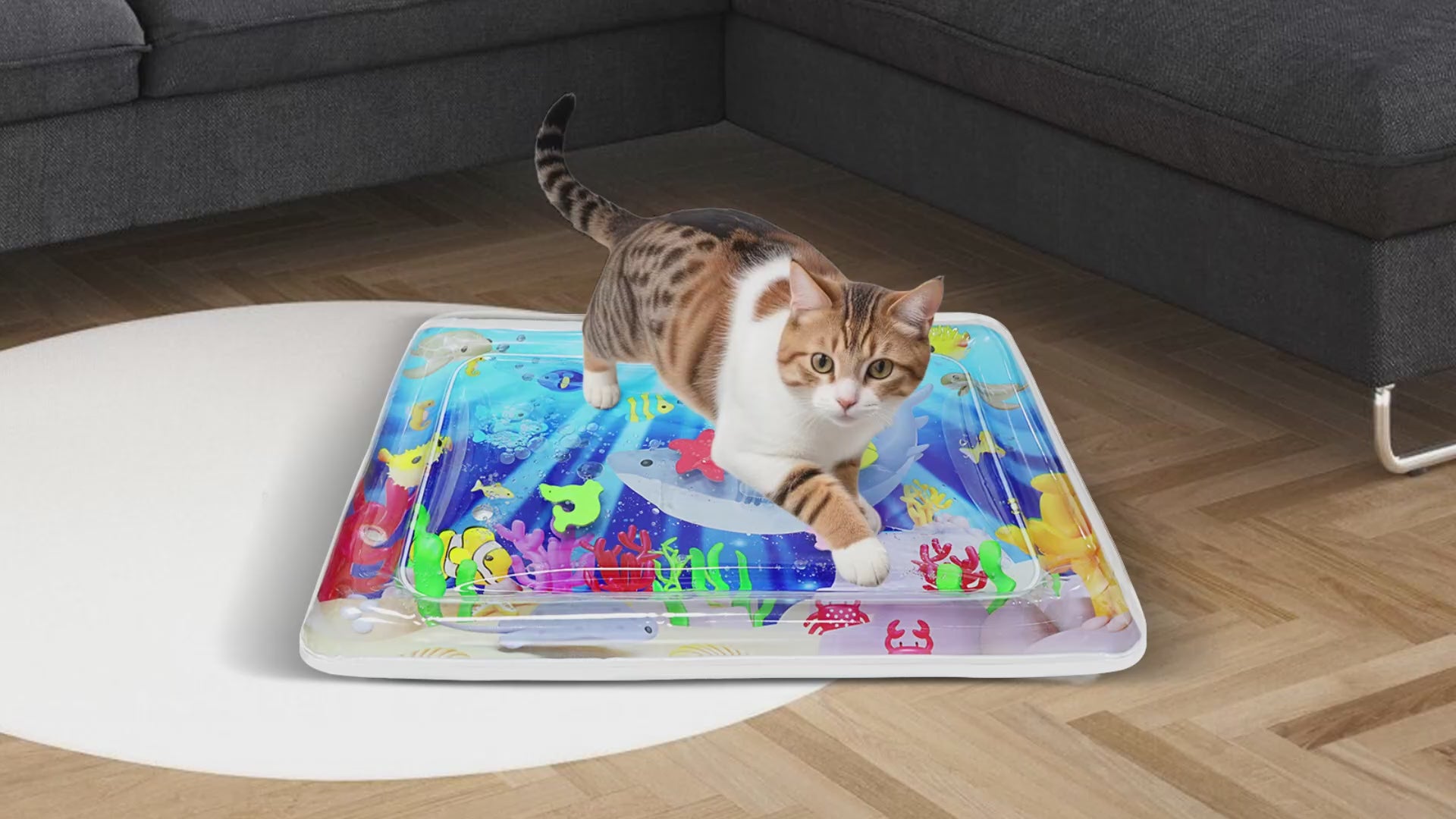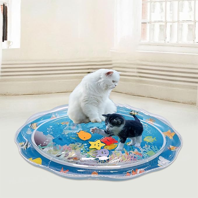 Built-in floating fish drift inside the water layer — and move every time your cat steps or paws on the surface. It mimics prey-like motion, so they’re not just lounging, they’re actively playing. It’s the perfect sensory water play mat for cats who need stimulation.